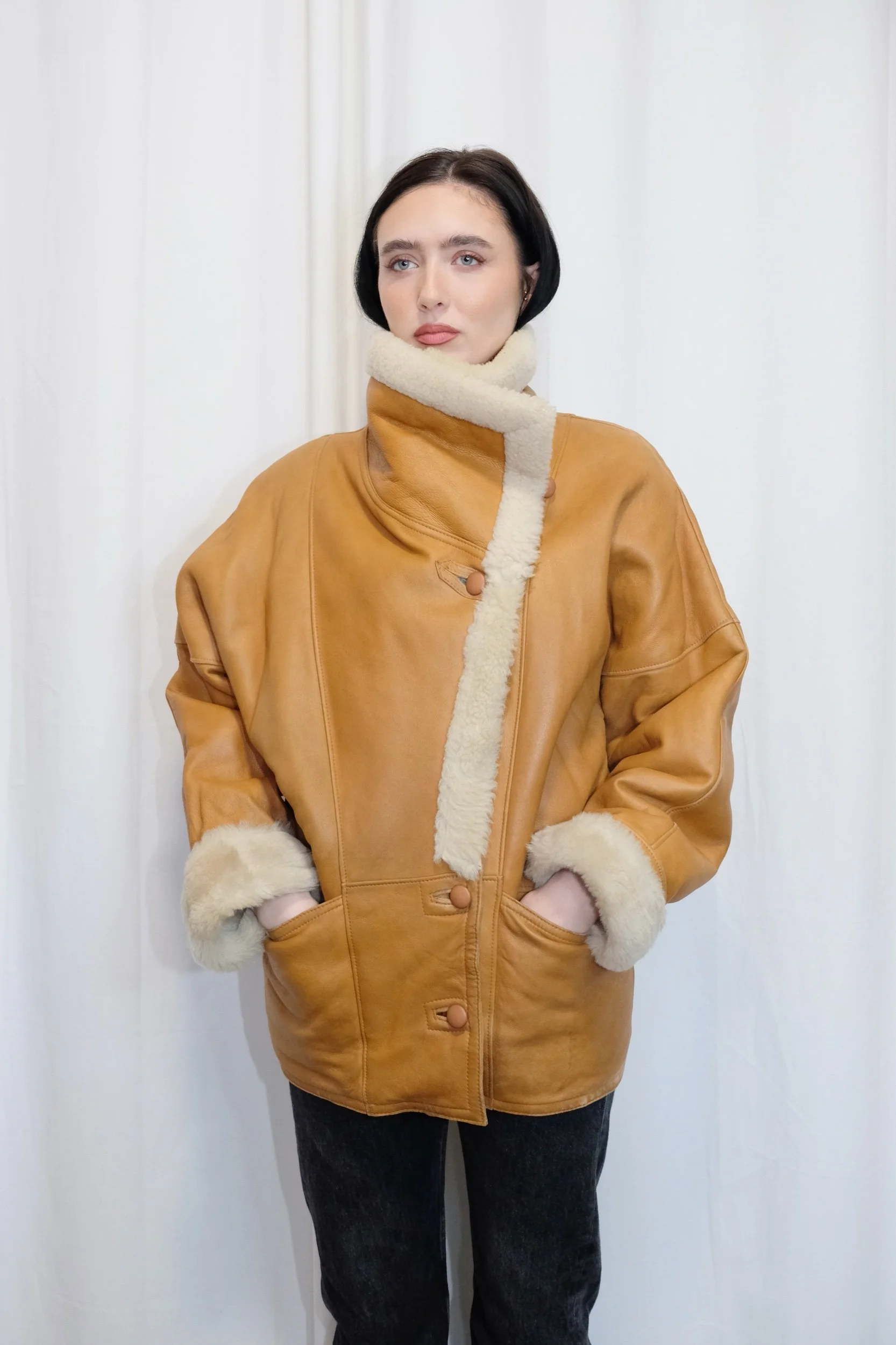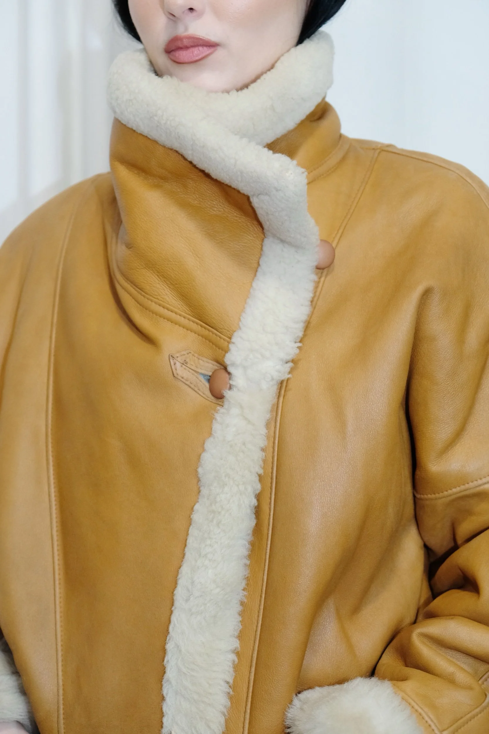 Classic lambskin shearling coat. Completely lined in shearling in side and inside pockets. Features option cuffed sleeves, and 3 way front closure (all pictured).