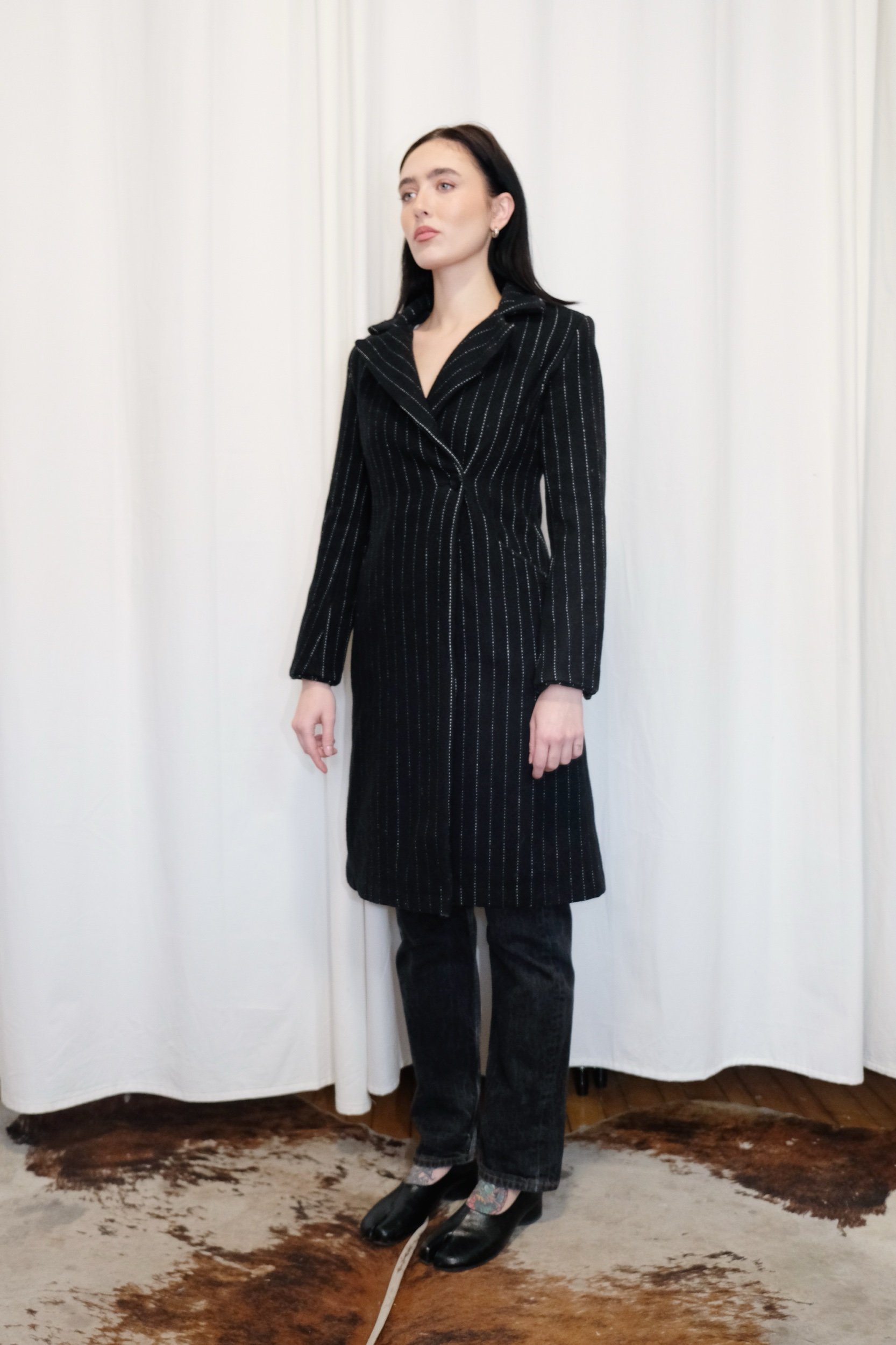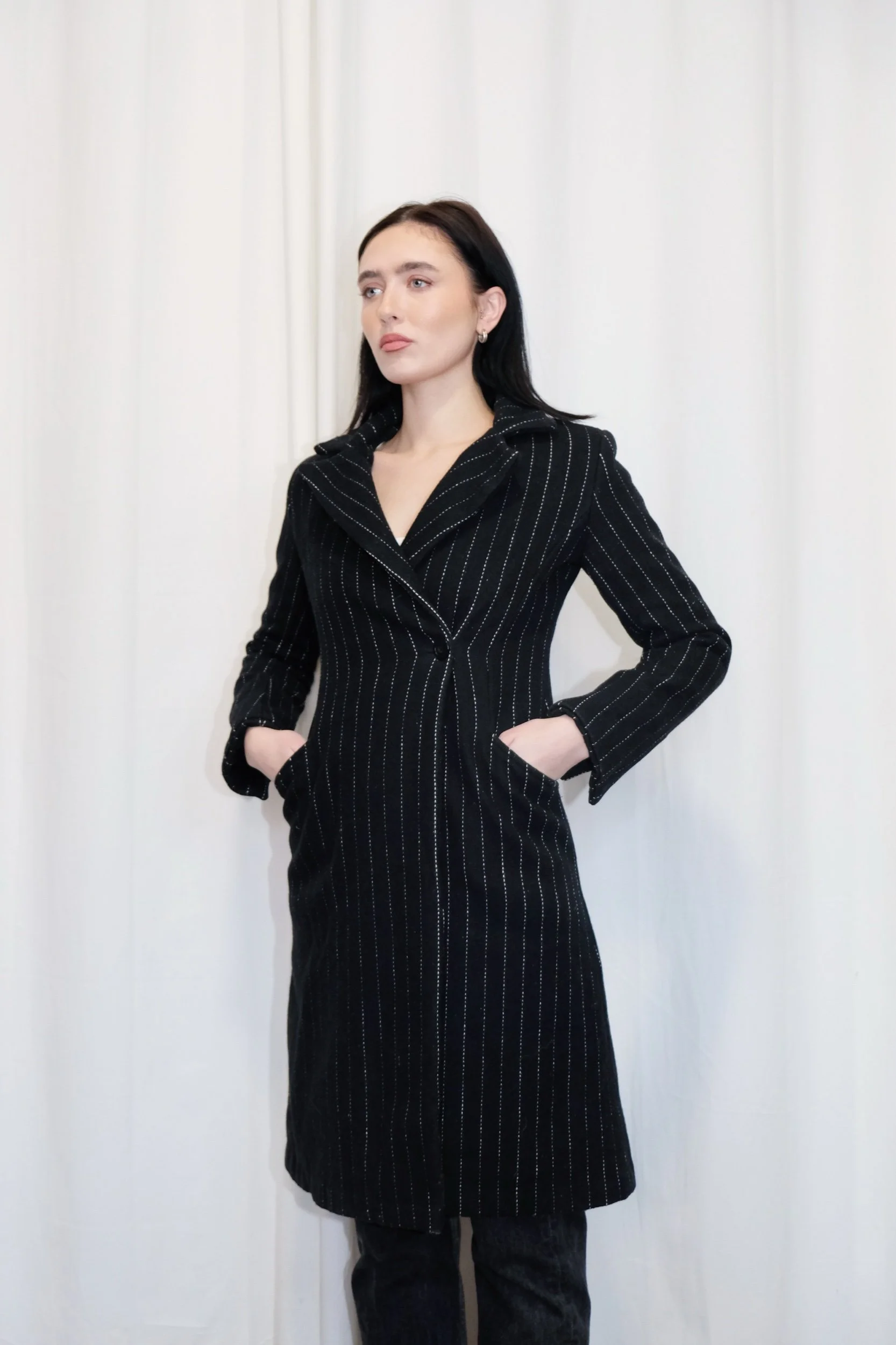 2000’s pinstripe wool Le Chateau blazer coat. Super slim and chic.