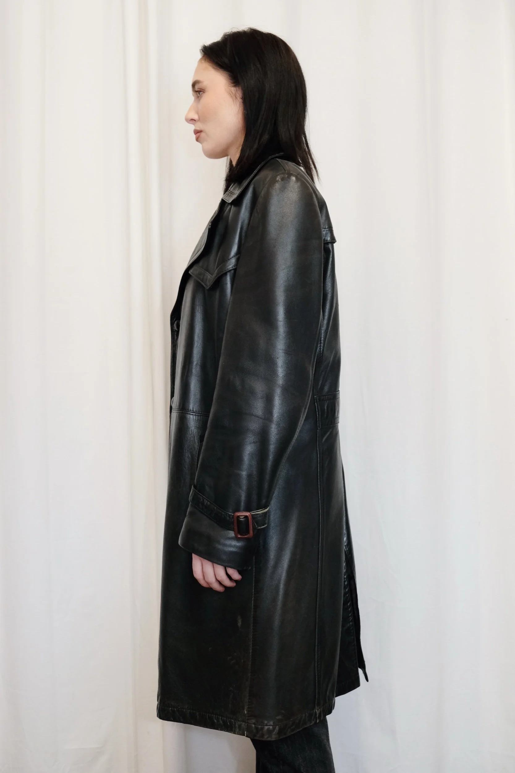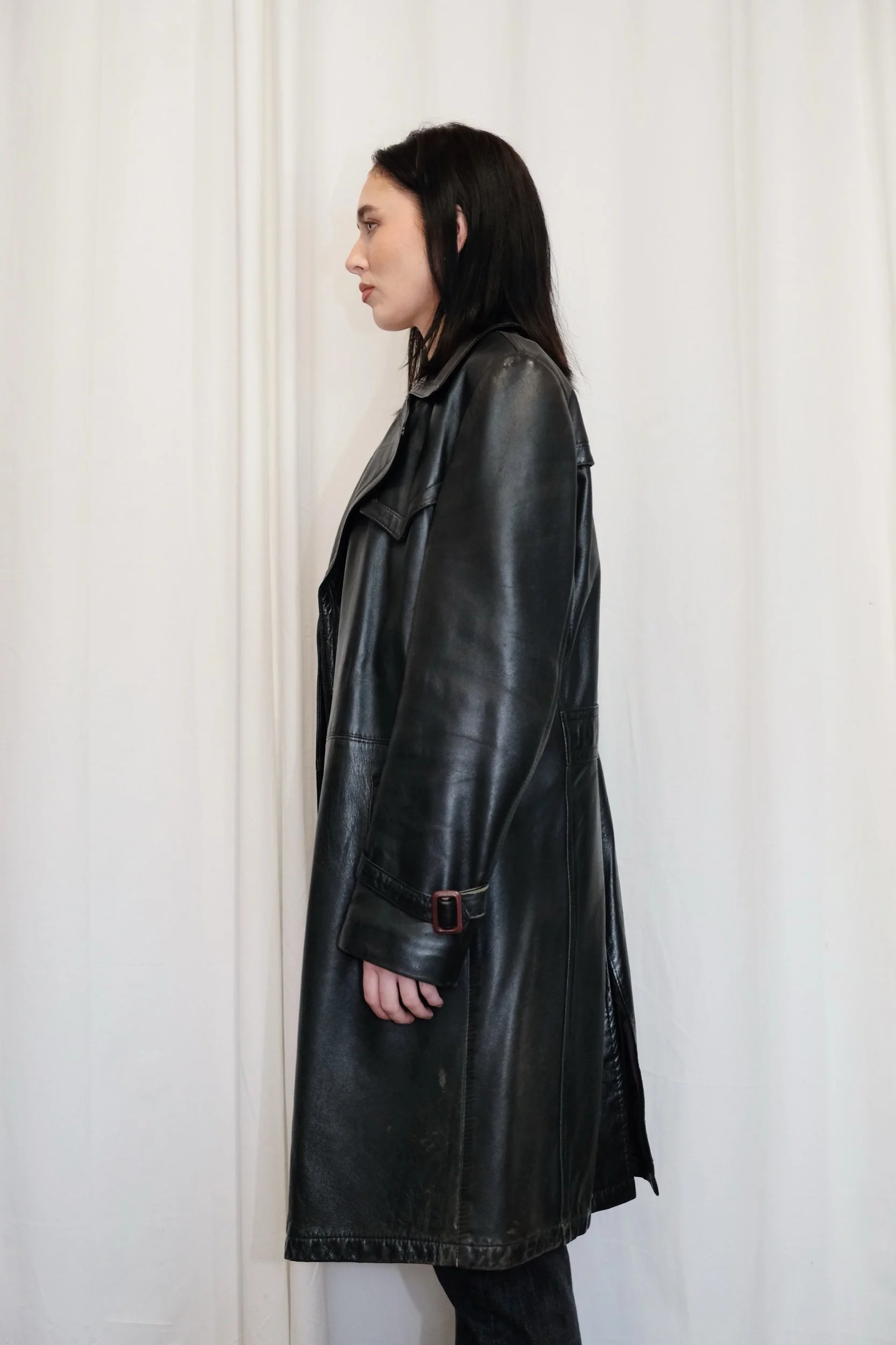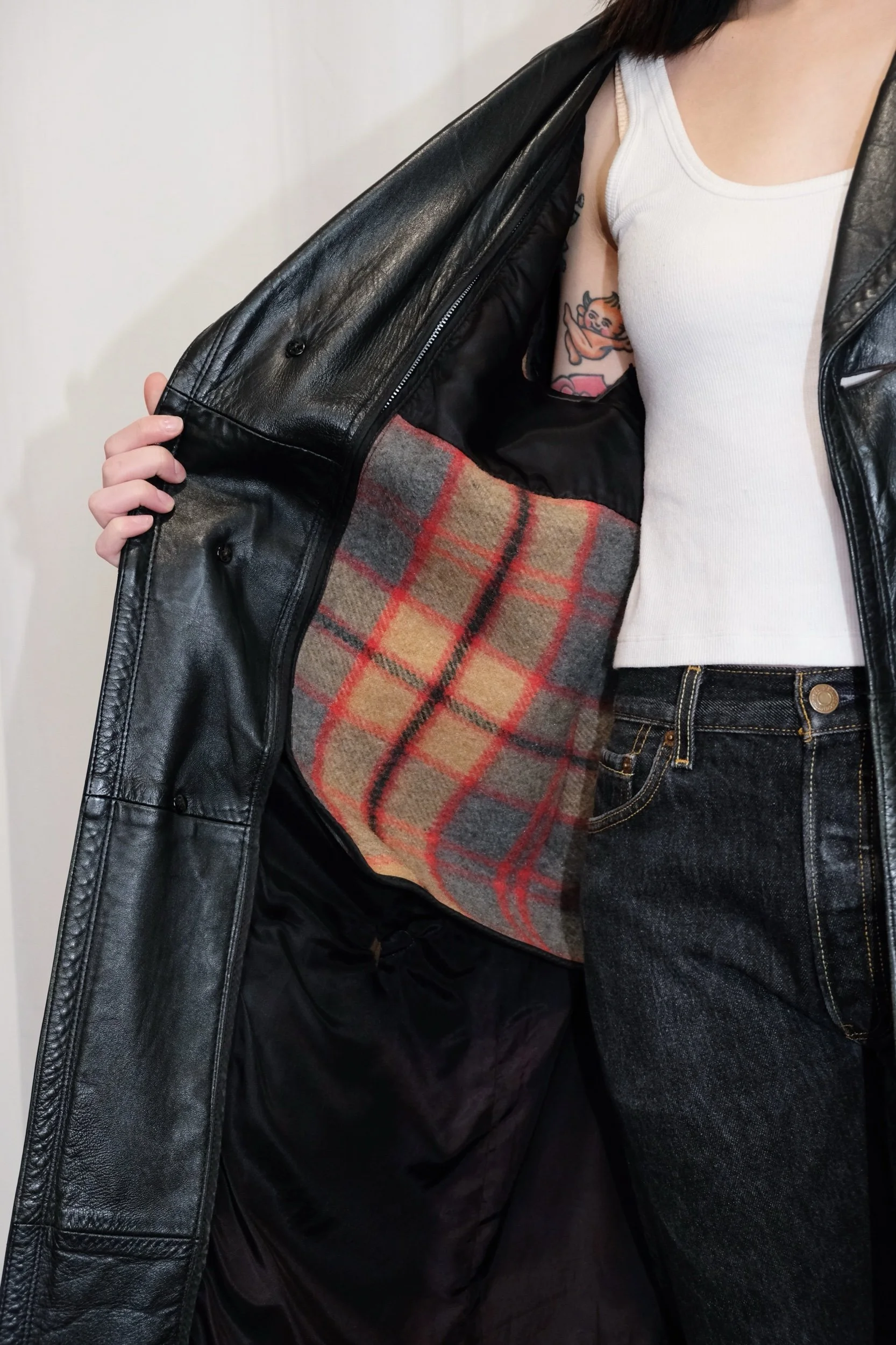 1970’s leather trench, with amazing wool blend zip out lining. Great for multi seasonal use, and a classic vintage design.